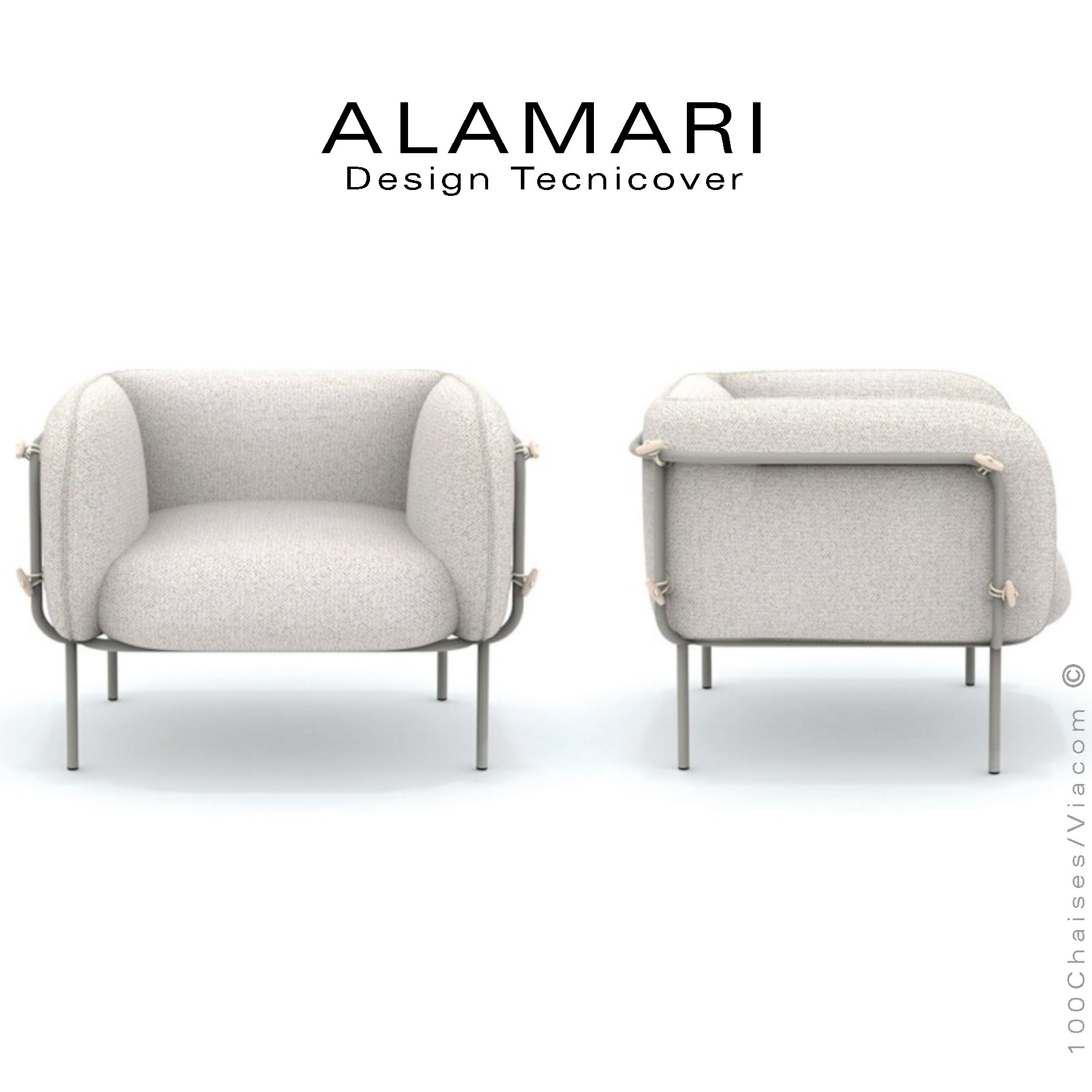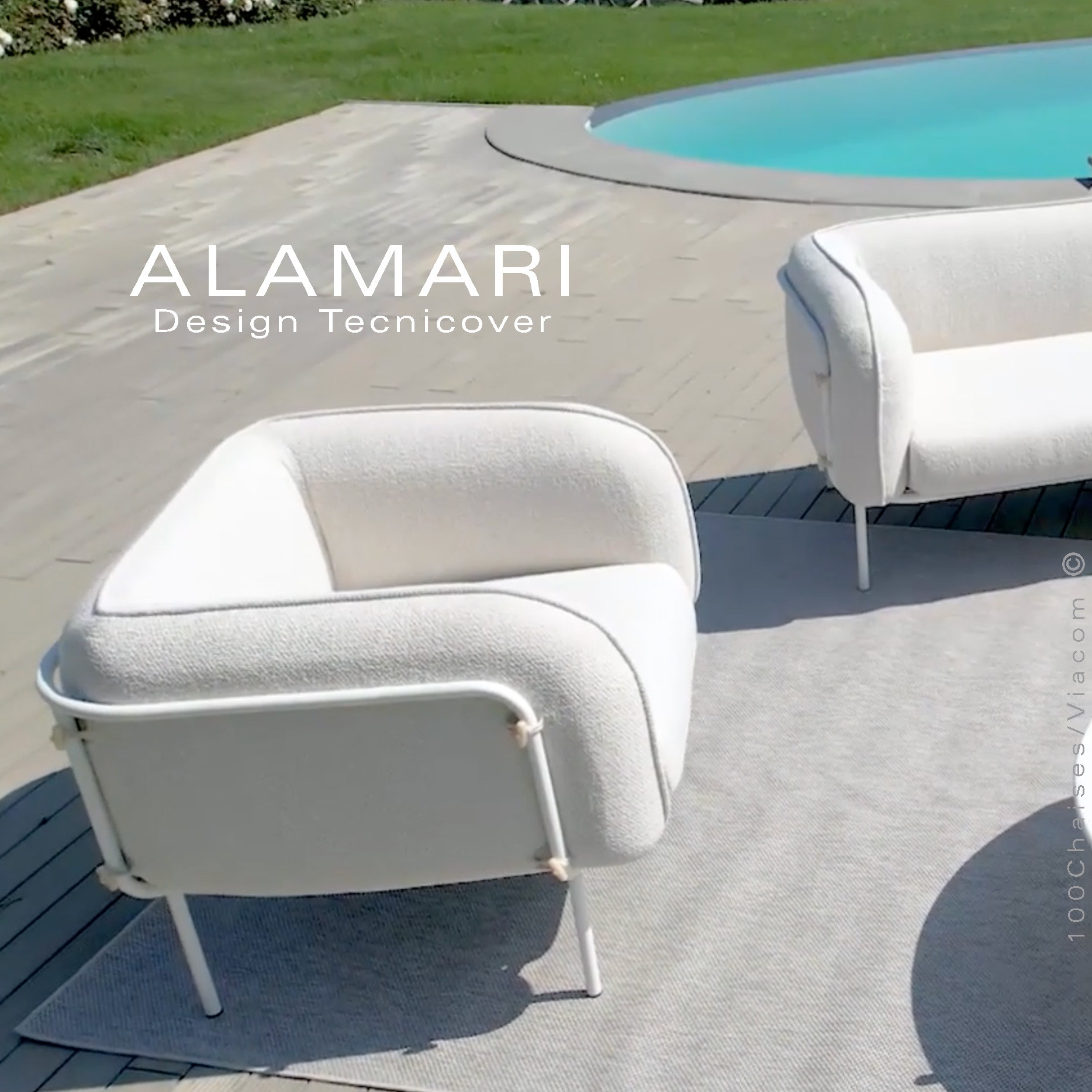 Le salon de jardin devient un espace fluide, parfois onirique, qui s'intègre parfaitement à tout environnement. Une collection au goût du jour, où l'imbrication de formes géométriques de base et de lignes essentielles crée une atmosphère dynamique et fonctionnelle. Alamari est une collection de deux sièges fauteuil lounge et canapé deux places qui se distinguent par leurs lignes douces et sinueuses. Le fauteuil, aux formes séduisantes et au design contemporain, s'habille de tissus résistants aux agents atmosphériques, lui permettant d'être utilisé en d'extérieur. Une collection aux lignes douces et enveloppantes, qui procurent une sensation de bien-être et de détente rien qu'en le regardant. Un accessoire d'ameublement idéal pour donner une touche d'élégance à votre espace extérieur.