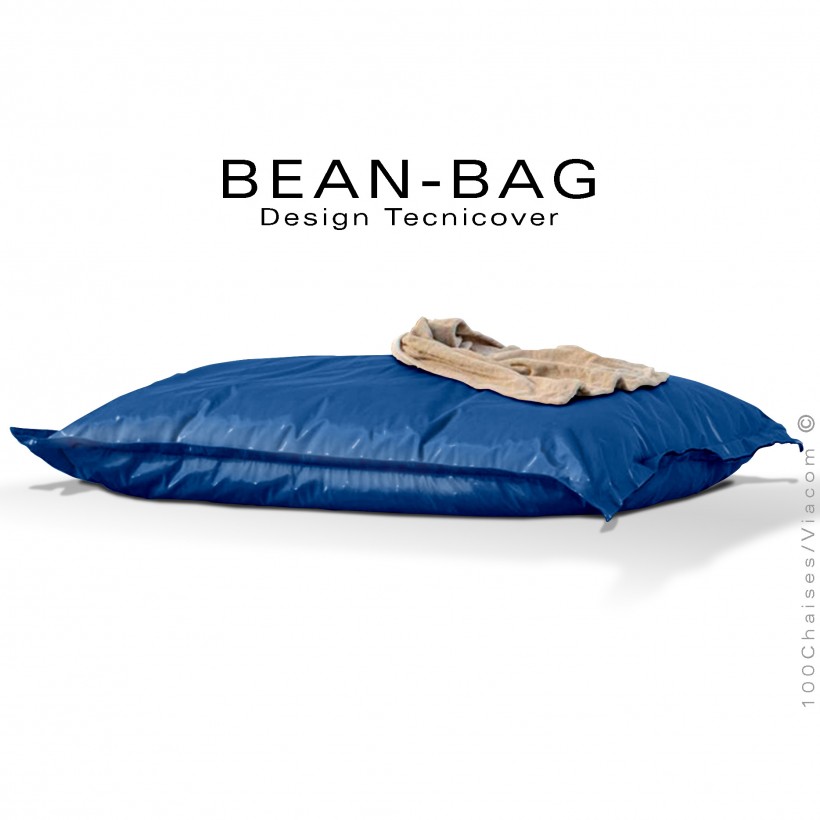 Pouf ou coussin géant XXL flottant pour piscine BEAN-BAG, billes de polystyrène, housse tissu hydrofuge bleu.