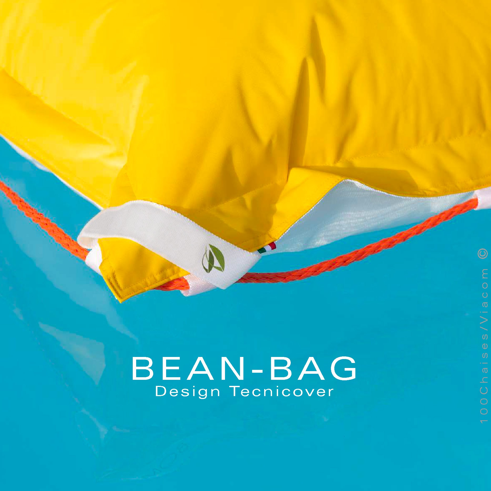 Pouf ou coussin géant XXL flottant pour piscine BEAN-BAG, filet et petites billes de polystyrène, housse tissu hydrofuge.