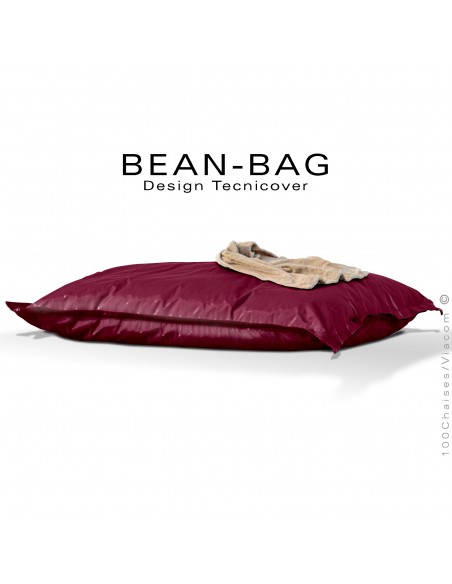 Pouf ou coussin géant XXL flottant pour piscine BEAN-BAG, billes de polystyrène, housse tissu hydrofuge bordeaux.