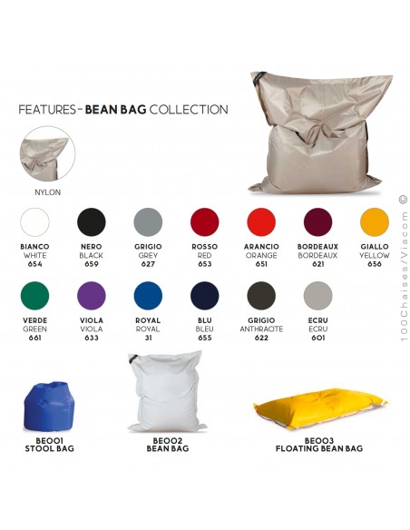 Palette couleur tissu hydrofuge pour STOOL et BEAN-BAG, coussin géant XXL pour pool house et piscine.
