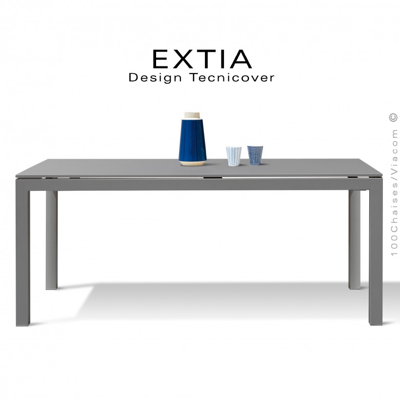 Table repas rectangulaire d'extérieur extensible EXTIA-200, structure acier galvanisé finition peint, avec rallonge intégrée.