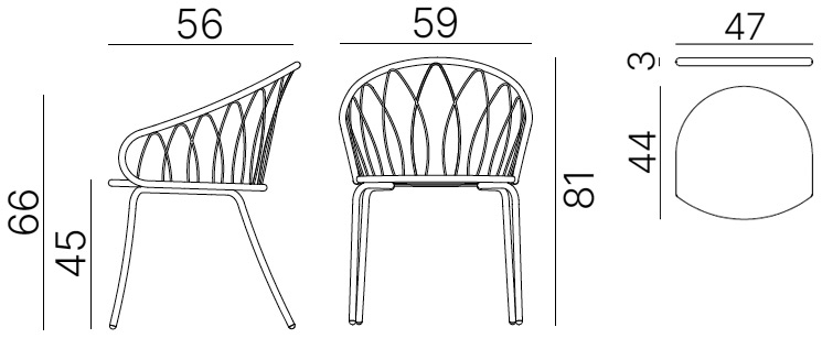 Le fauteuil design chic repas FLORA se caractérise par une ligne essentielle dans la partie inférieure, grâce à des pieds fins et sinueux, et par une décoration plus complexe concernant le dossier et l'assise. La structure est réalisée en tube d'acier Ø25 mm., les arabesques du dossier en rond d'acier Ø6 mm., capable de former des figures géométriques arrondies et douce, qui rejoint les accoudoirs en formant un seul bloc enveloppant.