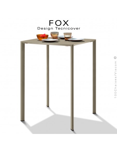 Table haute ou mange debout carré FAX, structure acier galvanisé peinture beige, plateau 60x60 cm.