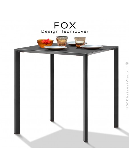 Table repas carré FOX, structure acier galvanisé peinture poudre noir, plateau dimensions 60x60 cm.