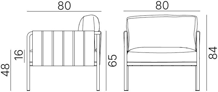 Fauteuil lounge d'extérieur HAMPTONS, structure acier galvanisé peint, assise confort deux coussins, accoudoirs habillage tissu.