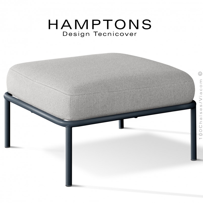 Pouf ou module banquette pour extérieur HAMPTONS, structure acier galvanisé peint, assise confort coussin, habillage tissu.