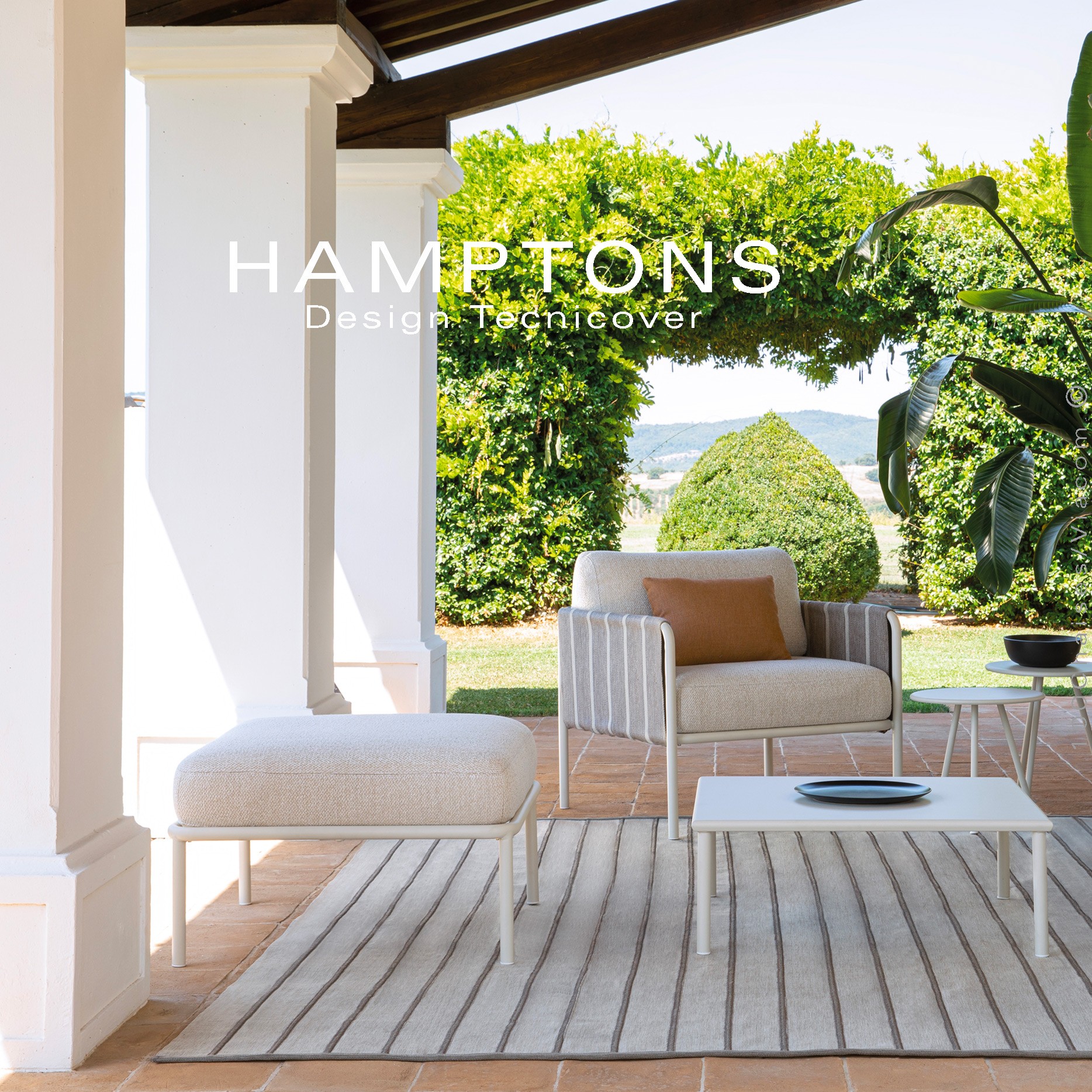 Une collection complète de mobilier d'extérieur HAMPTONS représente l'essence même du mobilier d'extérieur de qualité. Avec son design élégant, sa structure robuste et la possibilité de le personnaliser, ce canapé devient la star de vos moments de détente en plein air. Parfait pour ceux qui recherchent le confort, le style et la durabilité, tant pour les particuliers que pour les entreprises. Parfait non seulement pour un usage domestique, mais aussi pour l'ameublement d'espaces publics tels que les hôtels, les bars et les restaurants. La collection HAMPTONS se prête à des projets de fournitures contractuelles grâce à sa durabilité, sa facilité d'entretien et son élégance. Choisissez la qualité et apportez la beauté italienne à votre jardin.