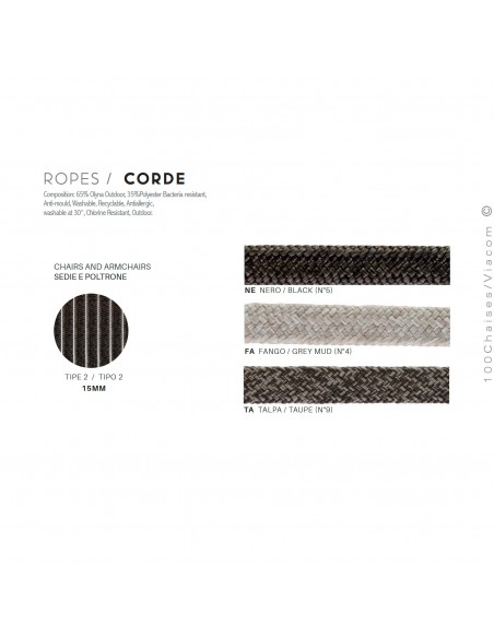 Palette peinture spéciale finition piétement pour chaise VEREA, dossier corde marine, designer Nicola Bonriposi.
