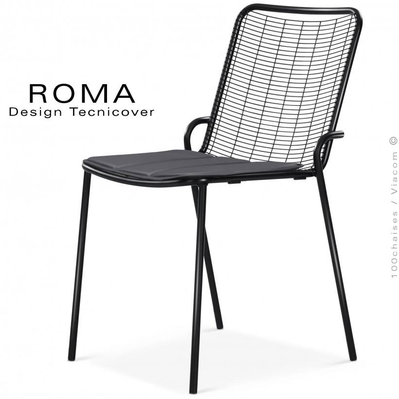 Aménagez un coin détente ou repas à la mode italienne avec la chaise ROMA. Grâce à son design grillagé en fil d'acier, elle allie esthétisme épuré, confort optimal et élégance raffinée. Sa structure entièrement conçue en tube d'acier rond de 18 mm., de diamètre reçoit un traitement galvanisé et une finition peinture polyester, lui conférant une résistance aux intempéries. Elle est parfaite pour l'extérieur ou le bord de mer. Mobilier empilable par 8 pièces. L'option coussin d'assise garnie de mousse polyuréthane aux dimensions 41x38xépaisseur 1,5 cm., reçoit un habillage en tissu de la gamme Avant-Garde déperlant pour l'extérieur. ROMA est une collection simple et attrayante, disponible en plusieurs coloris pour une harmonie parfaite - Lot de 4 pièces.