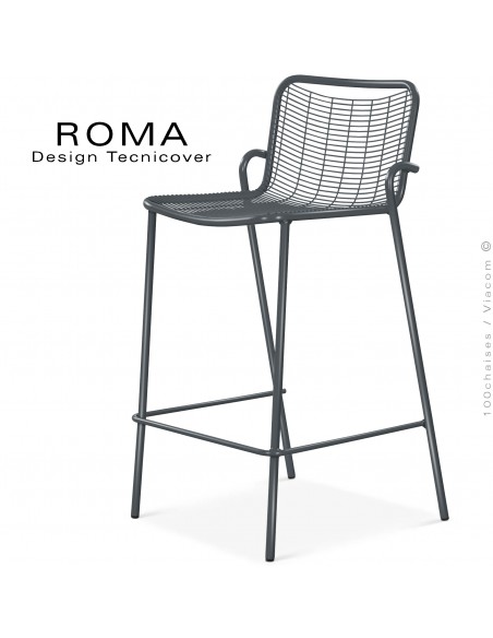Tabouret de bar d'extérieur ROMA, structure acier galvanisé peint anthracite.