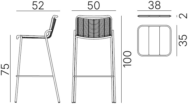 Tabouret de bar d'extérieur ROMA, structure acier galvanisé peint noir, détaille finition assise.