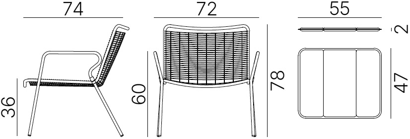 ROMA, fauteuil lounge : une question de style et de design. Ceux qui aiment la verdure le savent, chaque espace a son caractère propre et son style unique. Pour cette raison, la collection d'assise ROMA répond à tous les besoins dans un esprit chic et contemporain, alliant innovation et tradition avec harmonie. Qualité, facilité d'entretien et beauté sont les caractéristiques de la collection ROMA, qui offre des solutions différentes et complètes pour satisfaire les besoins les plus divers, garantissant le meilleur à tous points de vue. ROMA est aussi une source d'inspiration inépuisable pour les architectes et les professionnels attentifs aux dernières tendances du secteur. Ce qui fait la différence, ce n'est pas seulement un design captivant, mais aussi le choix minutieux de matériaux. Son coussin d'assise (55x47 cm., épaisseur 2 cm.), capitonné et ses accoudoirs vous garantiront un confort optimal. Ce mobilier d'extérieur se distingue par sa structure en acier galvanisé et sa peinture époxy, gages de résistance à la rouille et aux UV. Afin d'optimiser votre confort lors de vos pauses au soleil, nous vous recommandons d'opter pour le coussin d'assise. Pendant la saison hivernale, il est recommandé de le conserver dans un espace sec et protégé. Afin d'optimiser votre espace de détente, nous vous recommandons l'acquisition d'une table d'appoint. Cet article s'avère être un complément idéal pour votre coin détente.