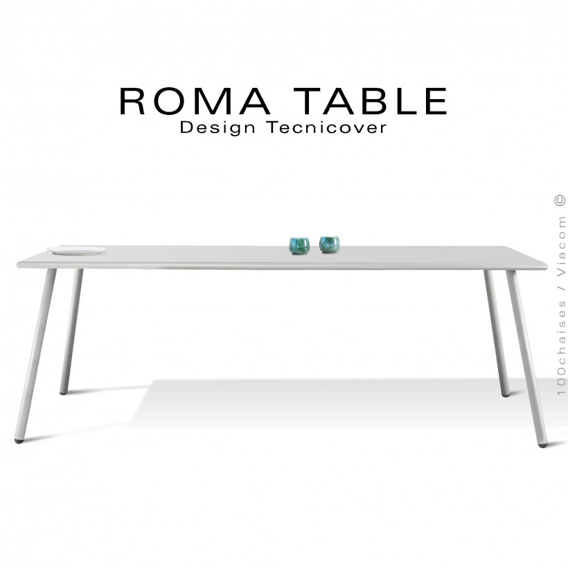 Table rectangulaire pour extérieur ROMA, structure acier galvanisé peint blanc perle, plateau 190x90 cm., chant arrondi.