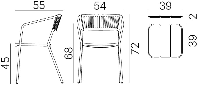 Le fauteuil de jardin SLOT, structure quatre pieds avec accoudoirs en tube d'acier rond Ø22 mm., finition galvanisé peint poudre avec verni de protection certifié Qualicoat pour une résistance optimale face aux intempéries, aux rayons U.V. et aux impacts. Avec tampons plastiques de protections des sols. Le dossier se compose de cordage marine tressé, apportant une touche contemporaine et légère. L'assise peut-être dotée d'un coussin confort aux dimensions 41x39xH.2 cm., en tissu acrylique, résistant à l'eau, imperméable, anti-tâches, anti-moisissures et qui résiste au soleil, idéal pour une utilisation en extérieur. SLOT est un fauteuil empilable, au design minimaliste et ergonomique, SLOT allie praticité et élégance.
