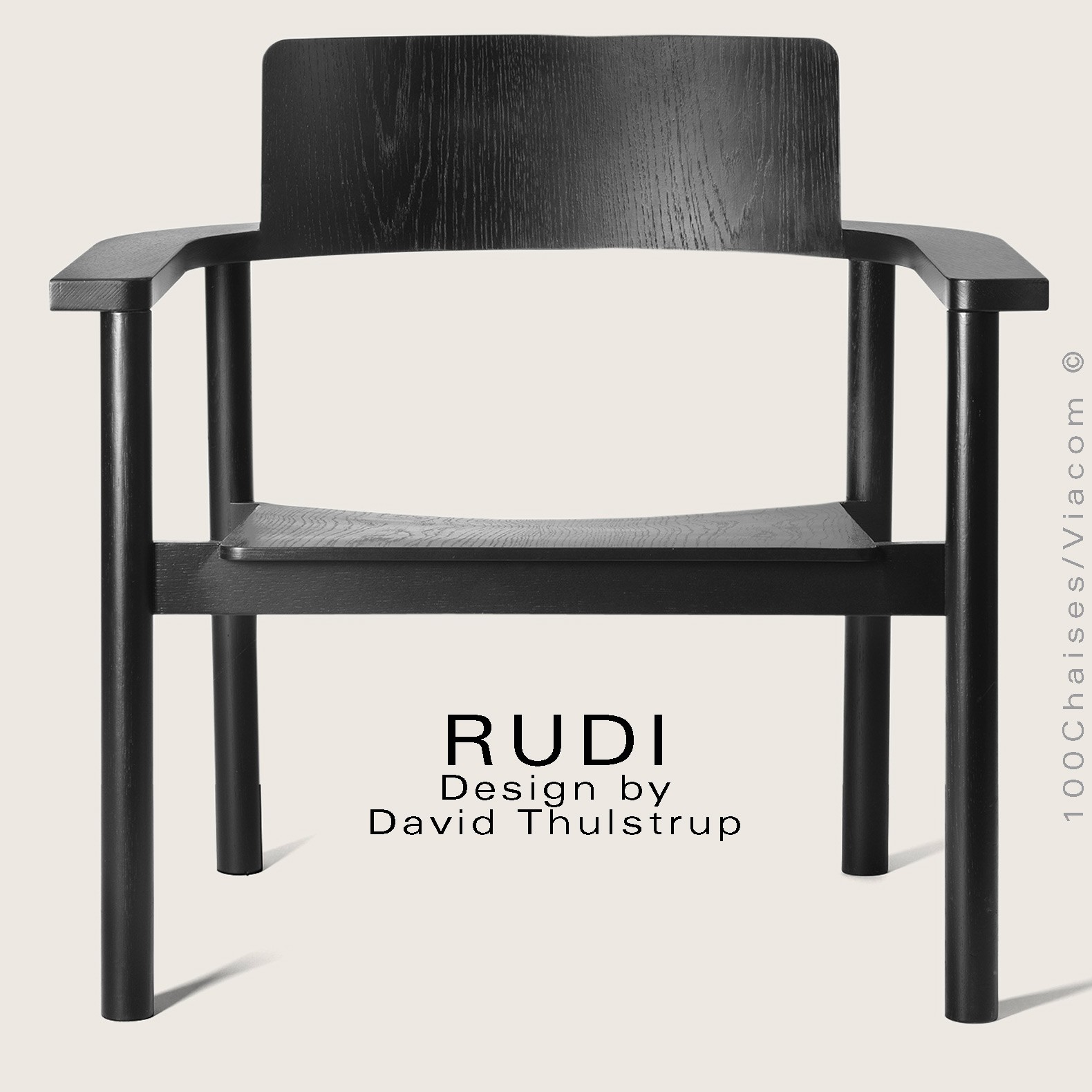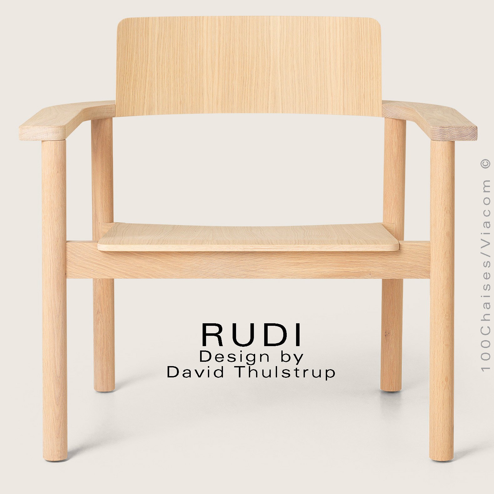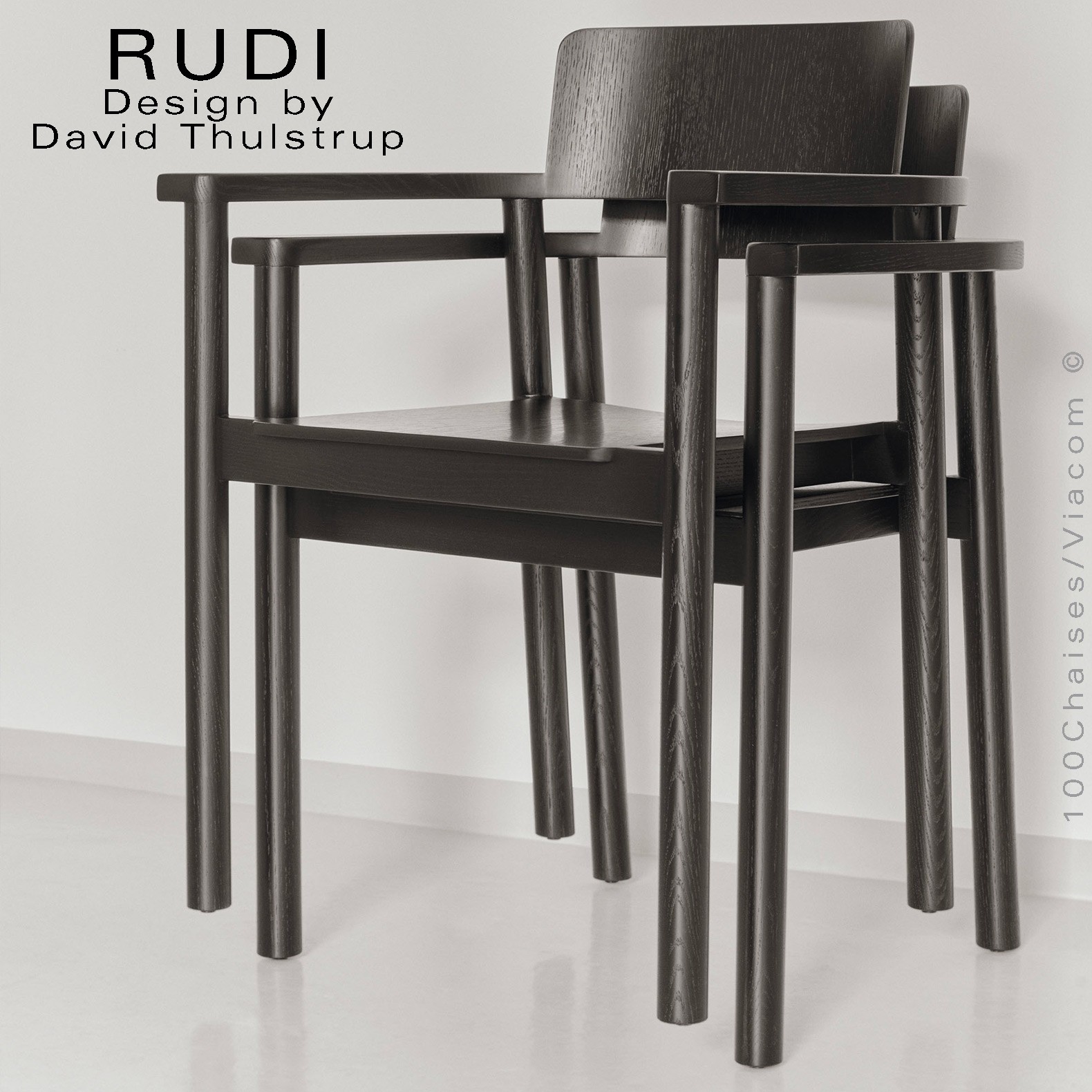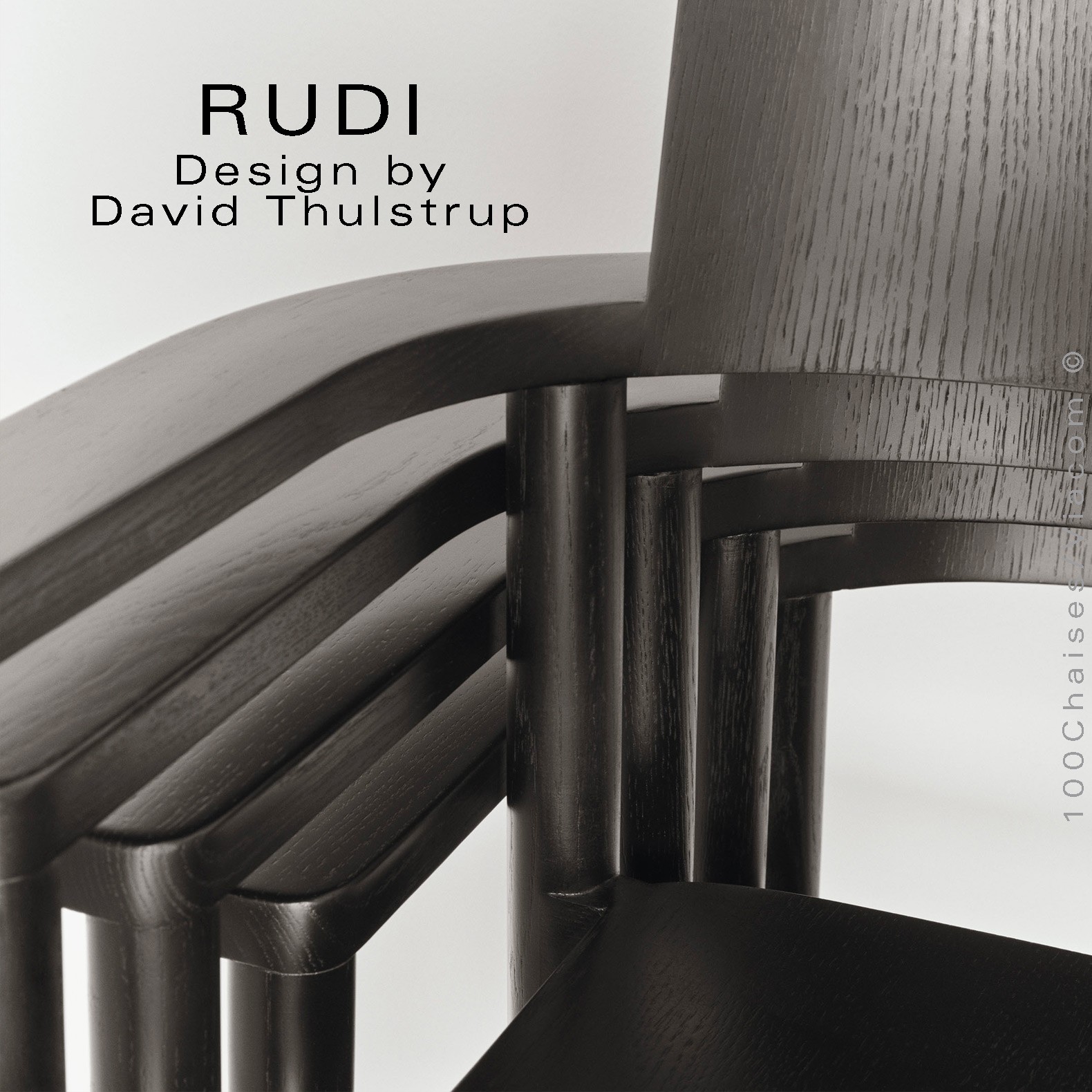 Le fauteuil Rudi est un modèle classique en bois massif dont la forme épurée et contemporaine s'inspire de sa fonction de chaise empilable robuste. Conçu par David Thulstrup, Rudi joue avec des lignes droites et des courbes rudimentaires, rehaussant leur expression grâce à une articulation précise dans la façon dont le dossier en contreplaqué incliné suit la courbe de l'accoudoir et dont l'assise flotte sur le cadre.