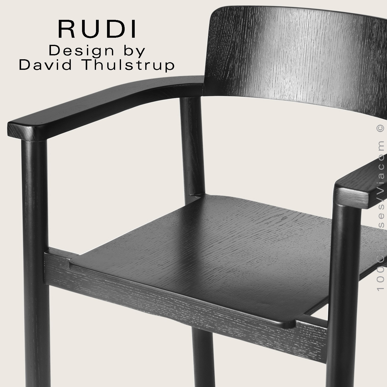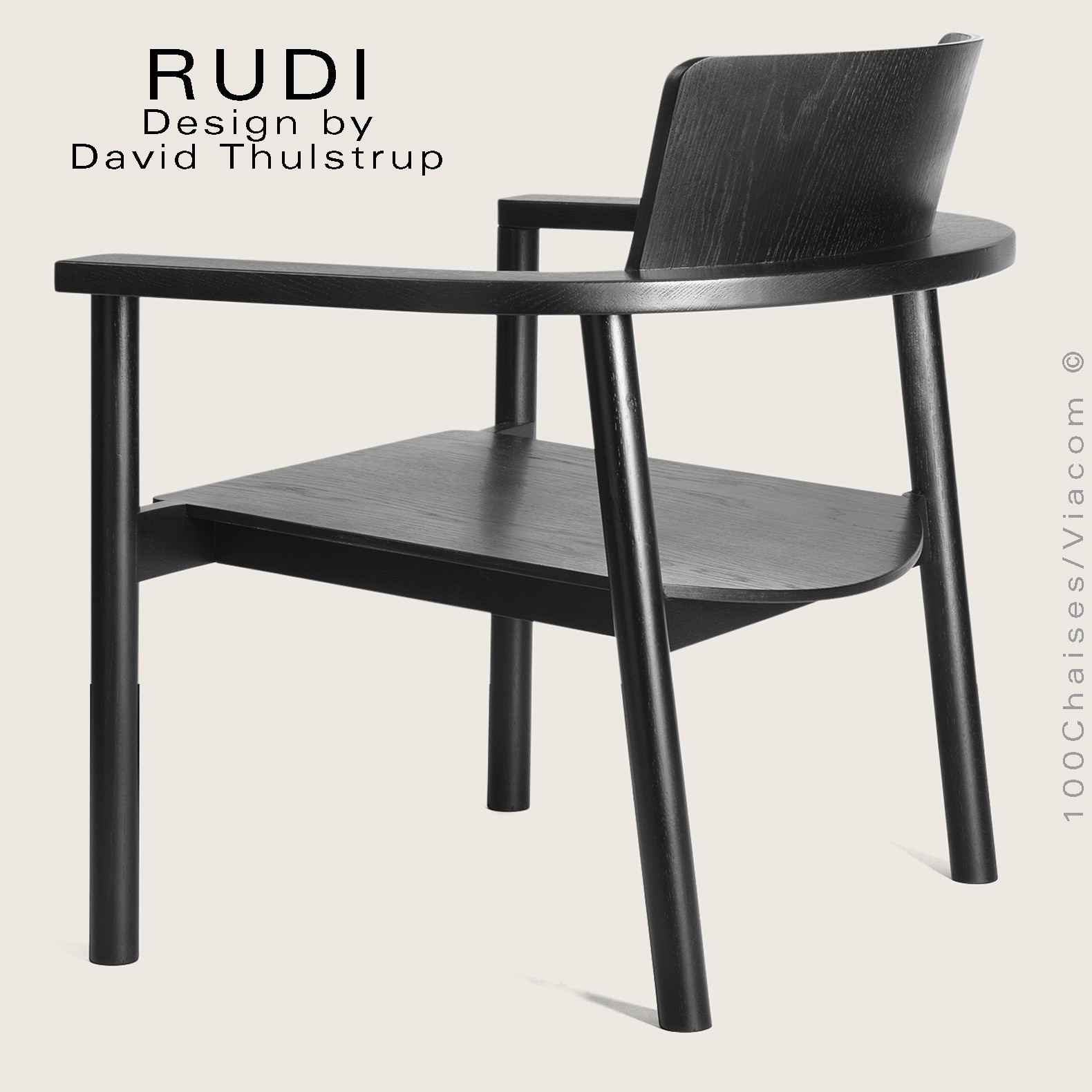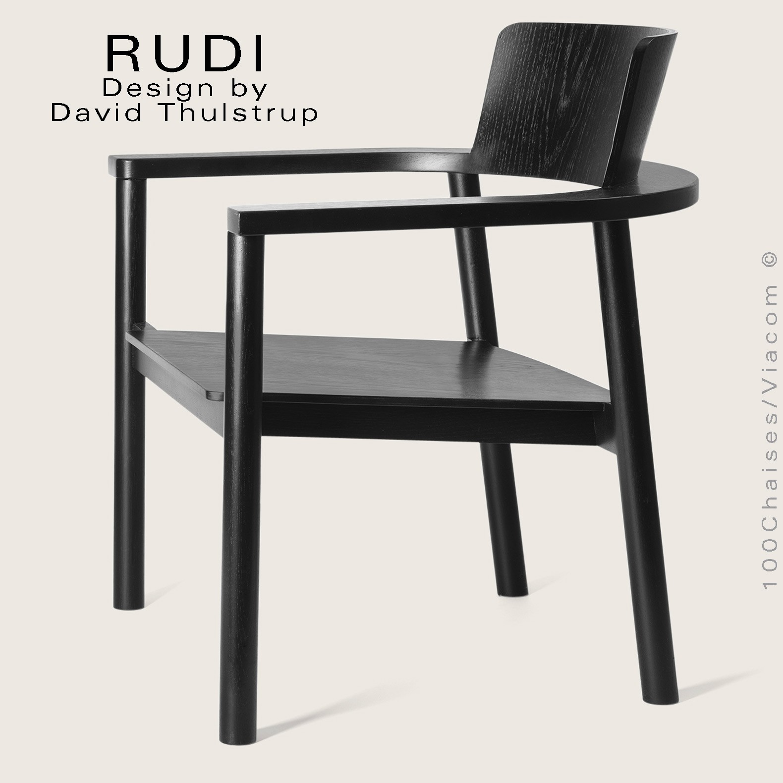 Le fauteuil Rudi est un modèle classique en bois massif dont la forme épurée et contemporaine s'inspire de sa fonction de chaise empilable robuste. Conçu par David Thulstrup, Rudi joue avec des lignes droites et des courbes rudimentaires, rehaussant leur expression grâce à une articulation précise dans la façon dont le dossier en contreplaqué incliné suit la courbe de l'accoudoir et dont l'assise flotte sur le cadre.