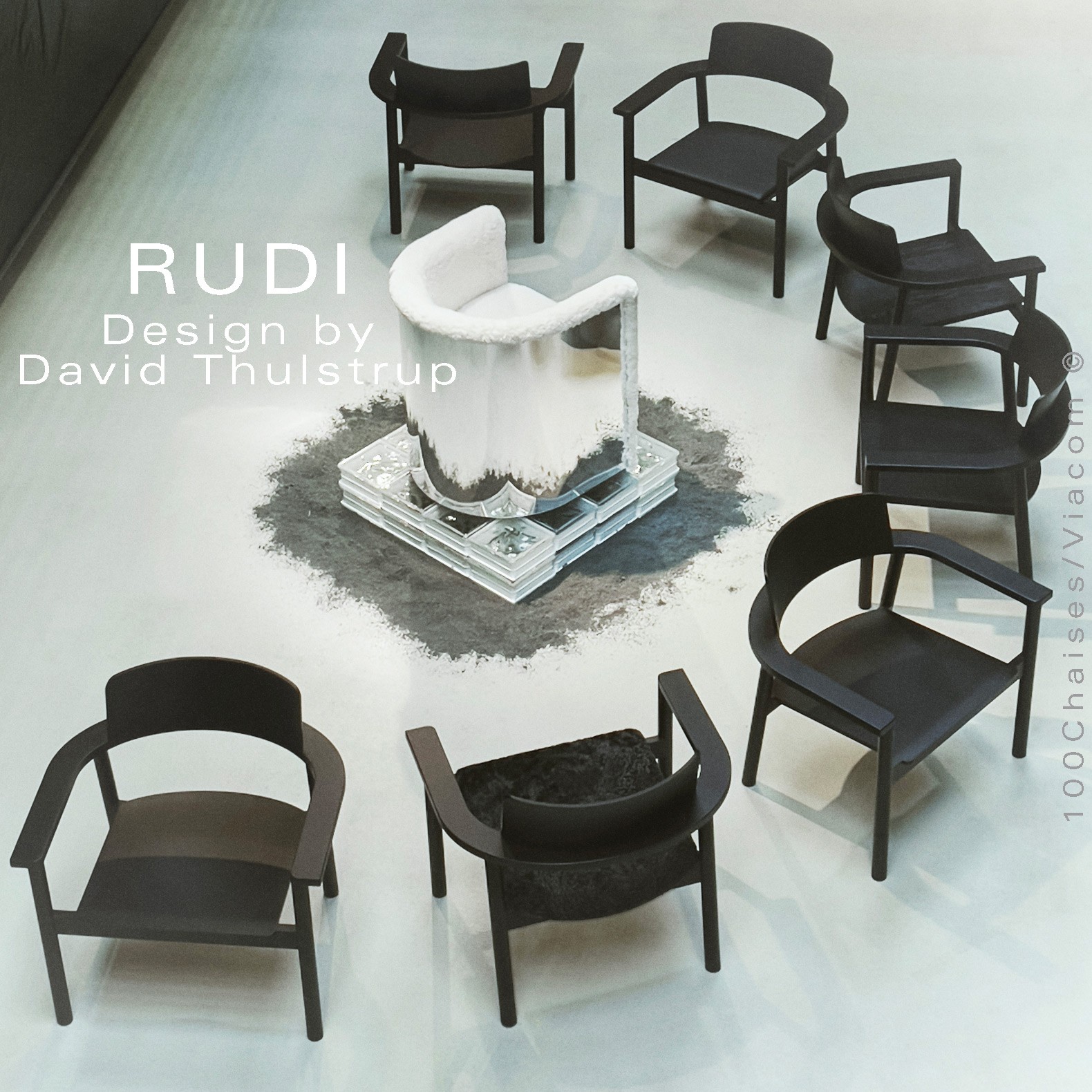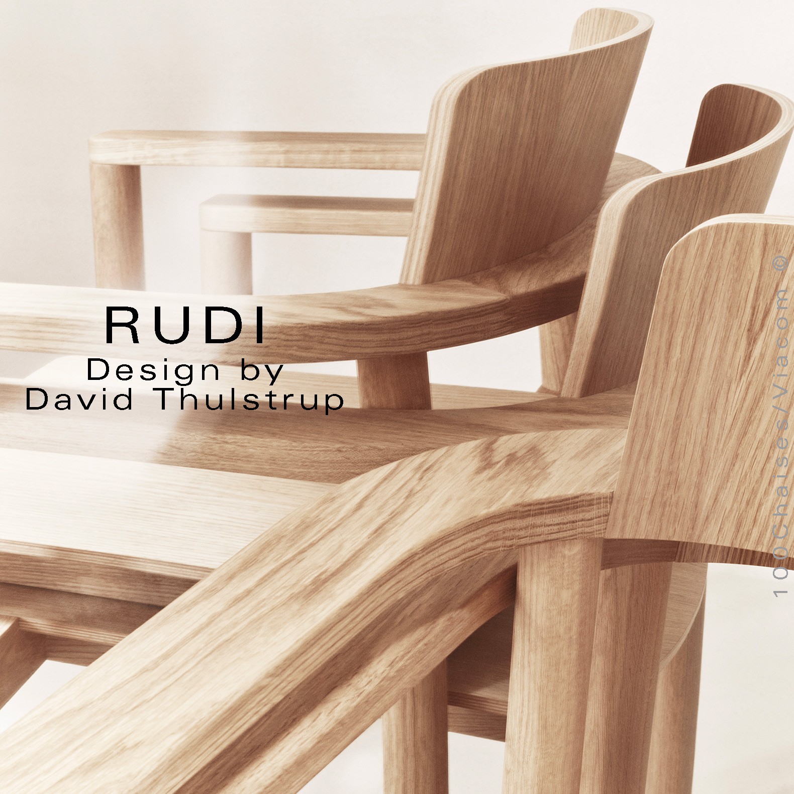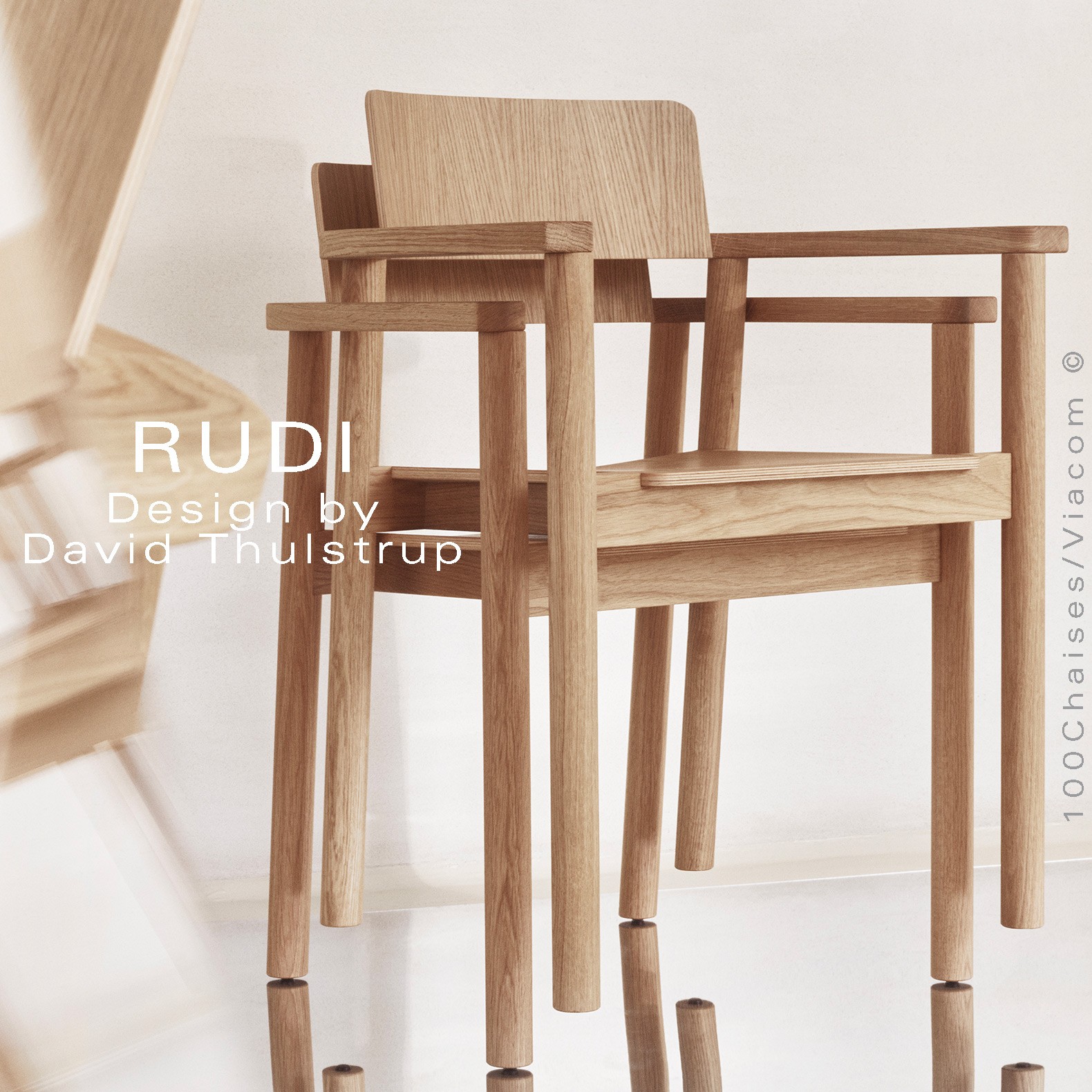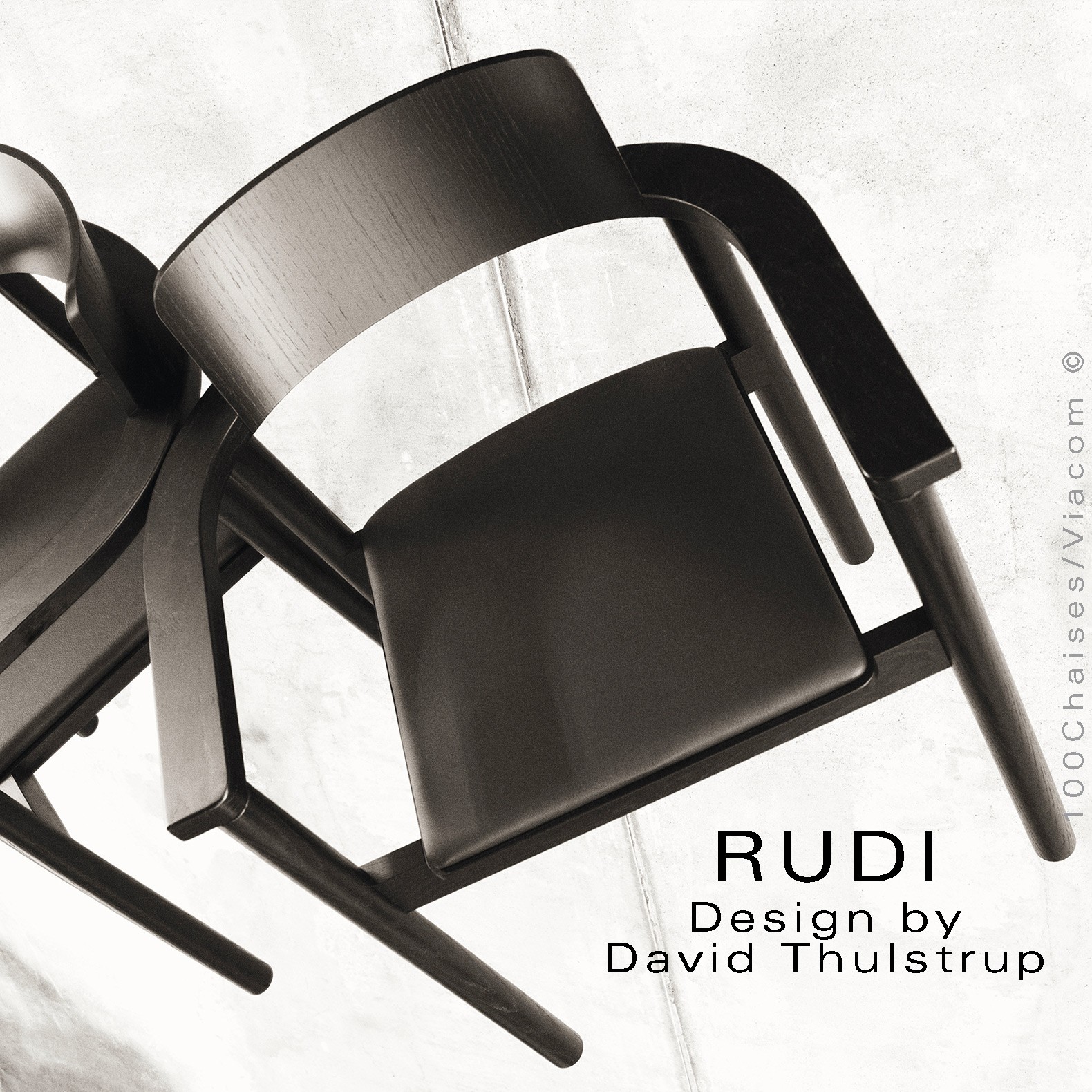 Le fauteuil Rudi est un modèle classique en bois massif dont la forme épurée et contemporaine s'inspire de sa fonction de chaise empilable robuste. Conçu par David Thulstrup, Rudi joue avec des lignes droites et des courbes rudimentaires, rehaussant leur expression grâce à une articulation précise dans la façon dont le dossier en contreplaqué incliné suit la courbe de l'accoudoir et dont l'assise flotte sur le cadre.