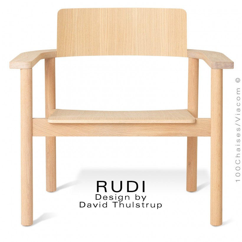Fauteuil lounge en bois massif de Chêne RUDI, finition huilé blanc.
