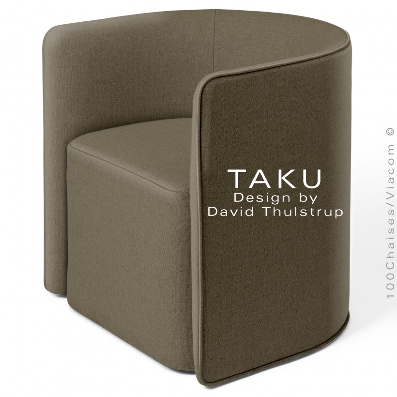 Fauteuil design TAKU, pour hôtel, restaurant, CHR, structure hêtre, assise et dossier garnis de mousse, habillage tissu tissé.
