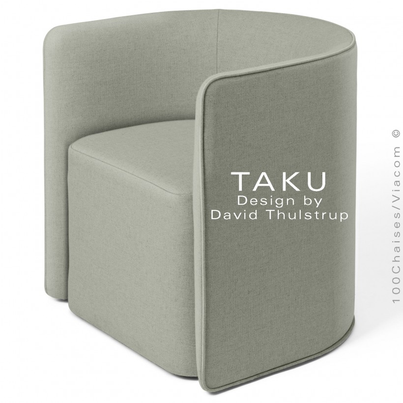 Fauteuil design TAKU, pour hôtel, restaurant, CHR, structure hêtre, assise et dossier garnis de mousse, habillage tissu tissé.