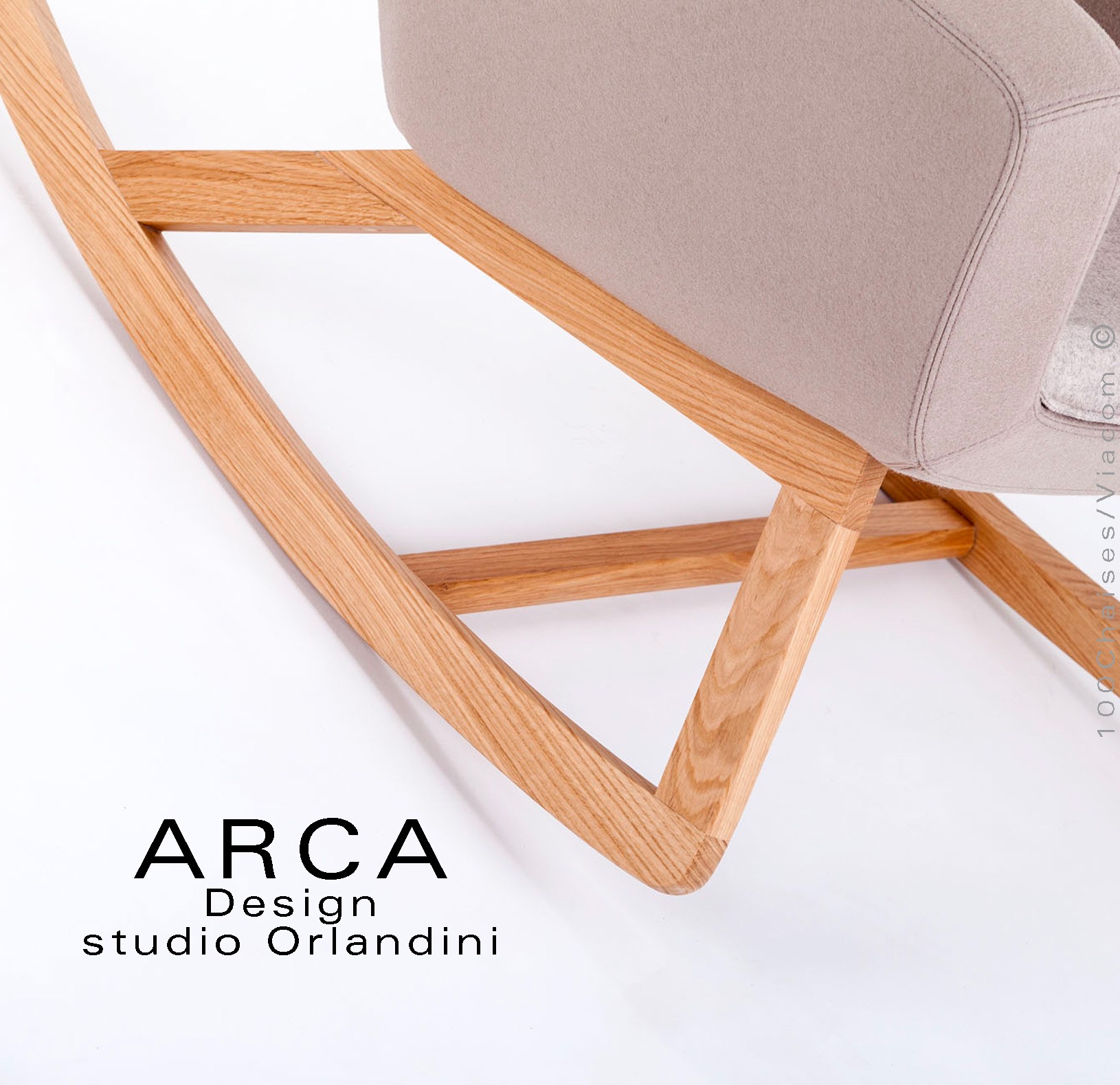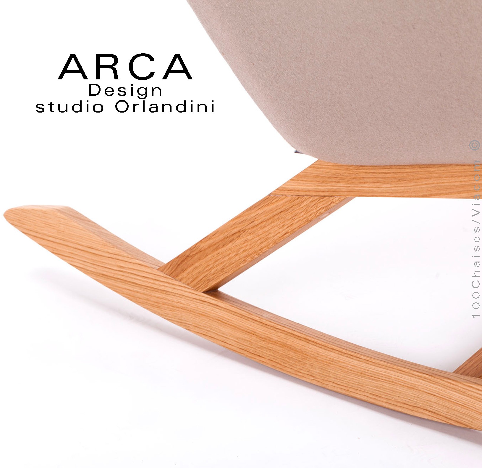 Fauteuil à bascule rocking chair lounge ARCA, le confort pour la maison et salon, habillage tissu, piétement bois massif.