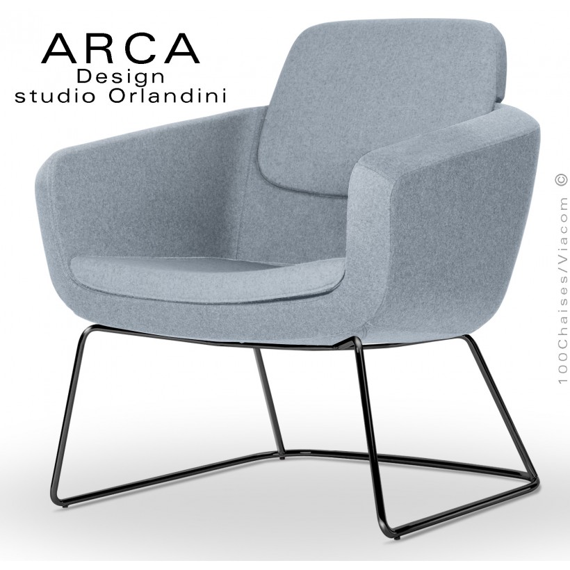 Fauteuil lounge confort ARCA, pour salon d'attente standing, habillage tissu couleur bleu clair, piétement peint noir.