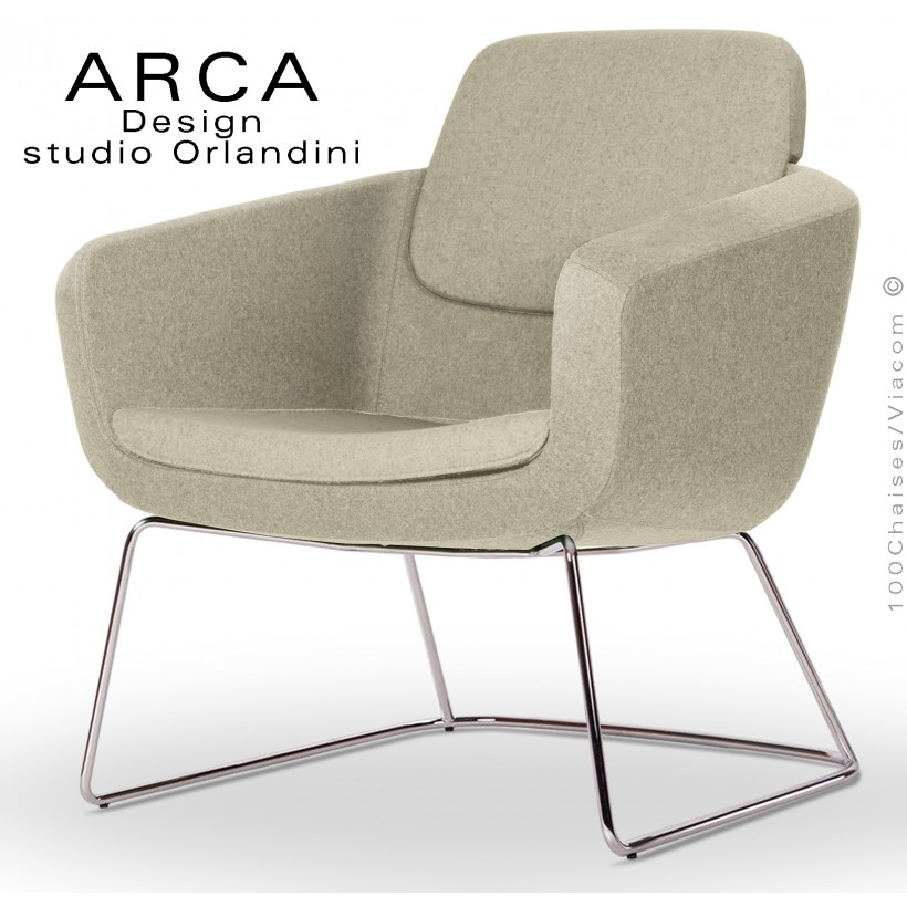 Fauteuil lounge confort ARCA, pour salon d'attente standing, habillage tissu 100% polyester, piétement luge chromé ou peint.