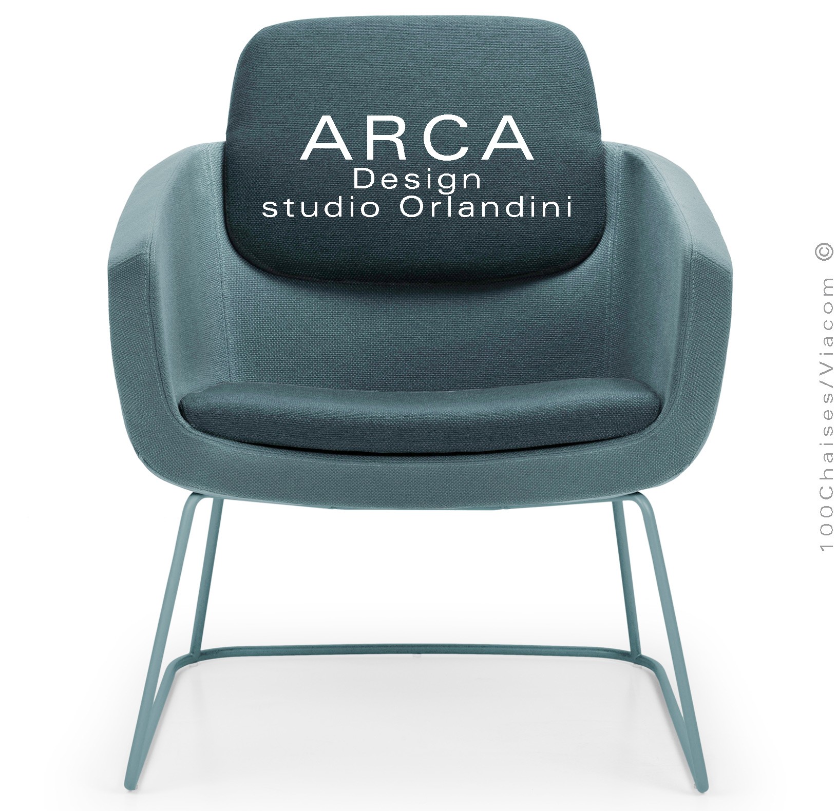 Fauteuil lounge confort ARCA, pour salon d'attente standing, habillage tissu 100% polyester, piétement luge chromé ou peint.