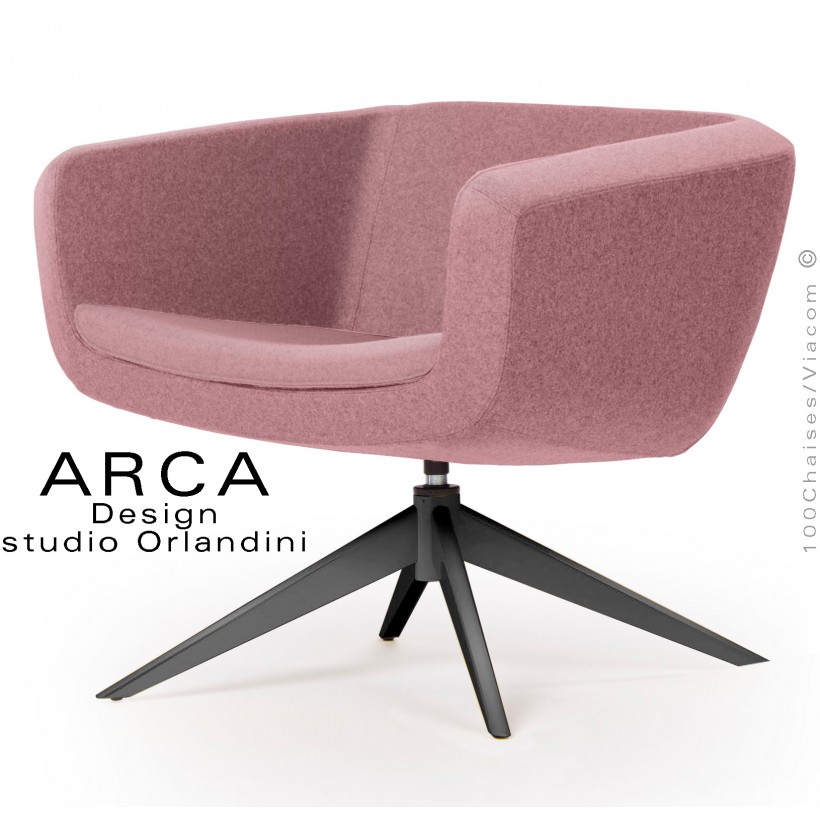 Fauteuil pour salon d'attente lounge ARCA, piétement 4 branches acier peint noir, assise habillage tissu rose.