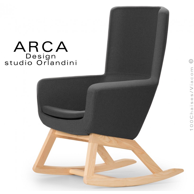 Fauteuil à bascule rocking chair ARCA Small, le confort pour la maison, habillage tissu couleur noir, piétement bois massif.