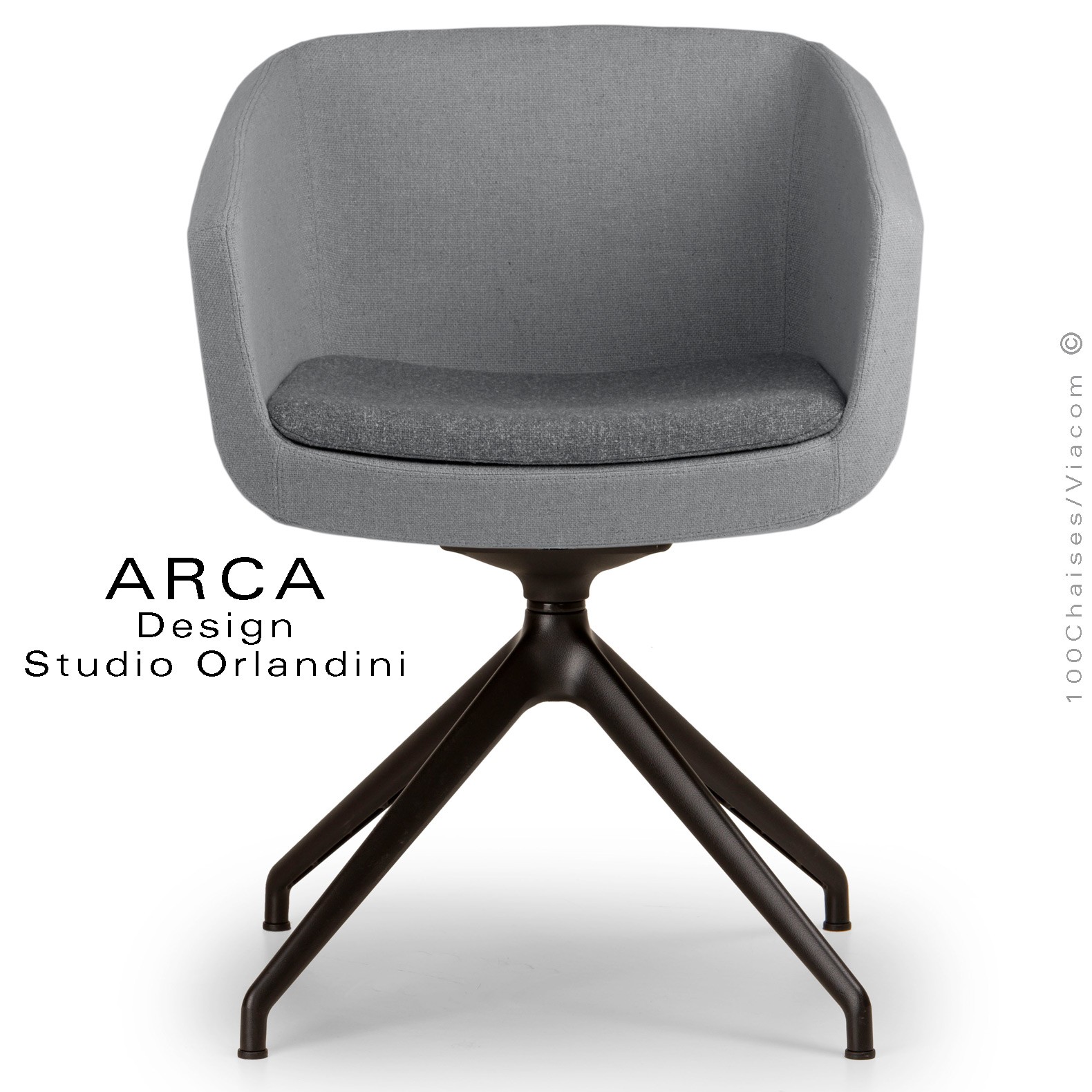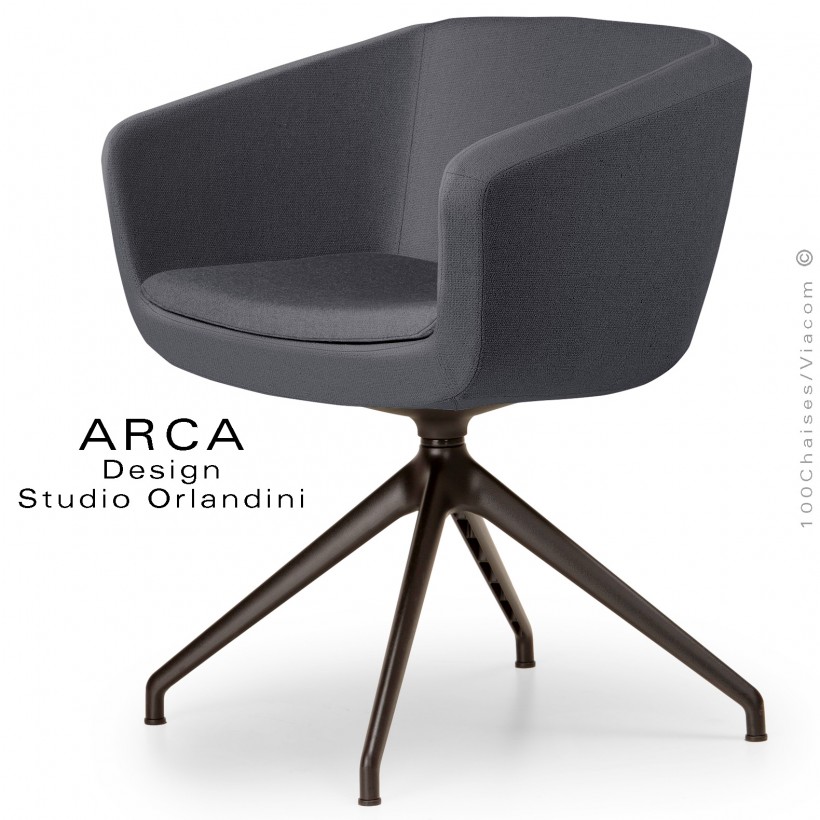 Fauteuil de bureau pivotant ARCA Small, ou domestique, assise garnie, habillage tissu gris foncé, piétement aluminium noir.
