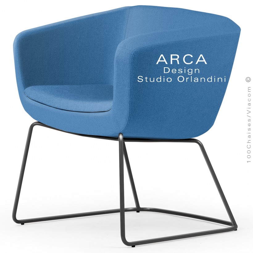 Fauteuil d'attente ou domestique ARCA Small, assise garnie de mousse, tissu couleur bleu, piétement type luge peint noir.