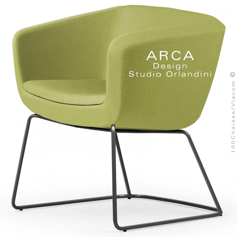 Fauteuil d'attente ou domestique ARCA Small, assise garnie de mousse, tissu couleur vert, piétement luge peint noir.