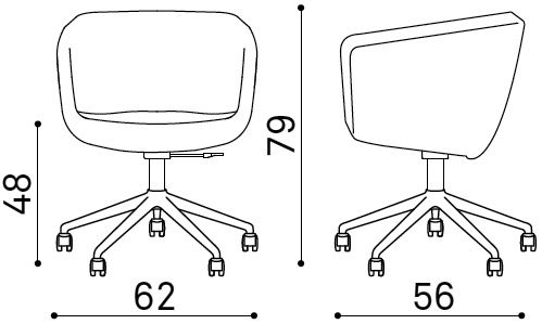 Fauteuil de bureau ARCA Small, ou domestique, assise garnie de mousse, tissu 100% polyester, piétement aluminium avec roulettes.