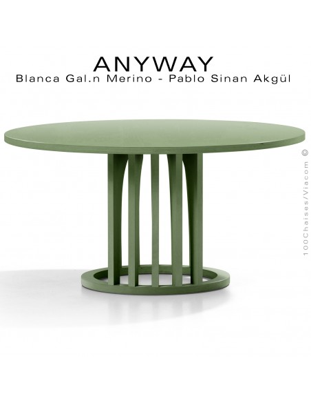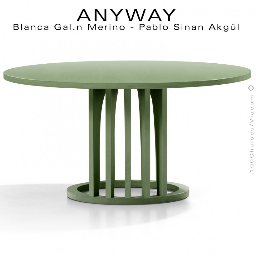 Table basse design ANYWAY, d'esprit déco, structure jambes ou bandes verticales en bois massif de hêtre, base en contreplaqué de hêtre Ø350 mm., hauteur 350 mm., avec patin feutre pour la protection des sols. Plateau rond Ø70 cm., en multiplis de boit de hêtre. Finition standard vernis naturel ou incolore ou peint suivant gamme fabricant voir palette. Autre finition sur demande dans la gamme RAL.