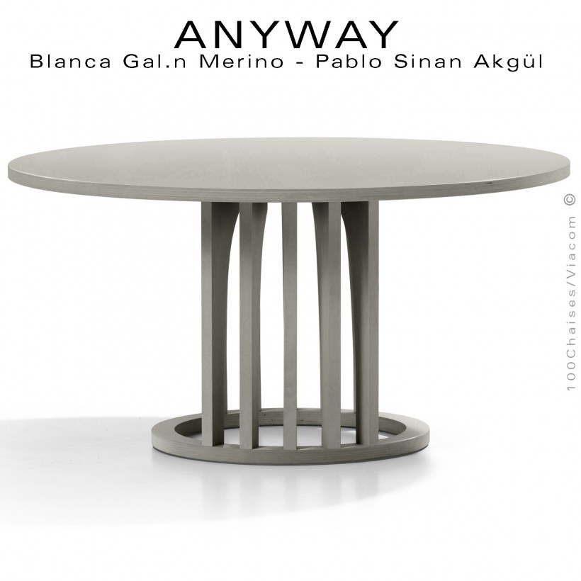 Table basse design ANYWAY, d'esprit déco, plateau Ø70 cm., structure bois massif de hêtre peint ciment.