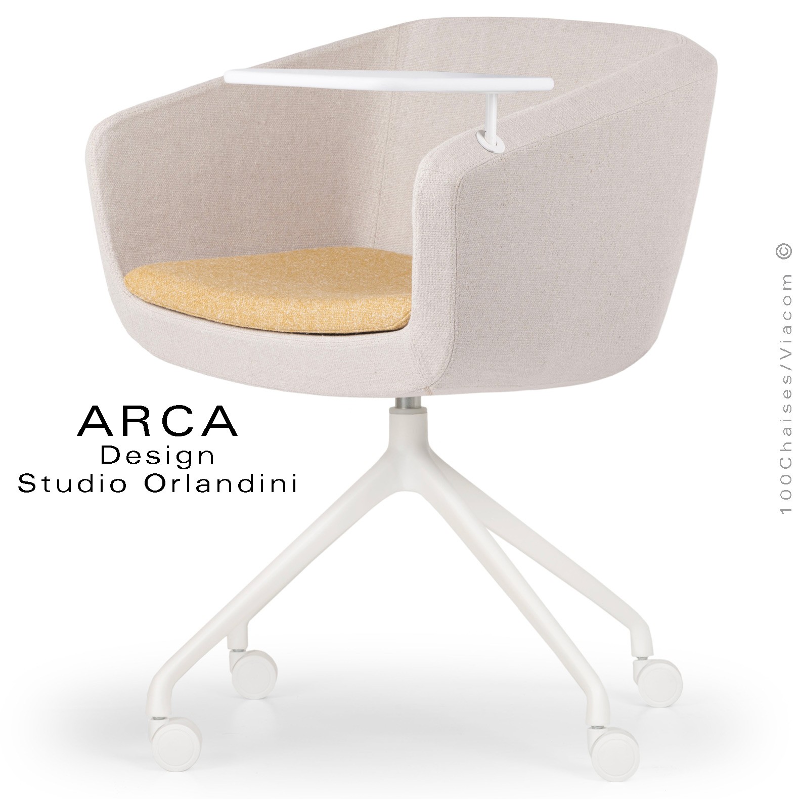 Son superbe piétement luge vous permettra d'avoir une vision , sans même bouger de votre fauteuil. Il se distingue par ses courbes accueillantes au design raffiné, qui ajoutera une touche de style aux endroits dans lesquels vous souhaiterez le placer. La structure de son assise ainsi que son dossier ergonomique sont idéaux pour vous garantir une posture optimale. Toutes les versions d'Arca peuvent être équipées d'une tablette d'écriture pivotante pour plus de fonctionnalité.