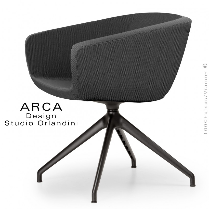 Fauteuil de bureau ou domestique pivotant ARCA Mini, structure interne en acier. Assise, dossier et accoudoirs garnis de mousse moulée et injectée à froid. Habillage tissu type feutre gamme ERA, 100% polyester du fabricant Camira, couleur au choix voir gamme fabricant. Assise hauteur fixe, pivotante à 360°. Piétement quatre branches en fonte d'aluminium, finition peinture noir ou autre au choix (suivant palette fabricant).