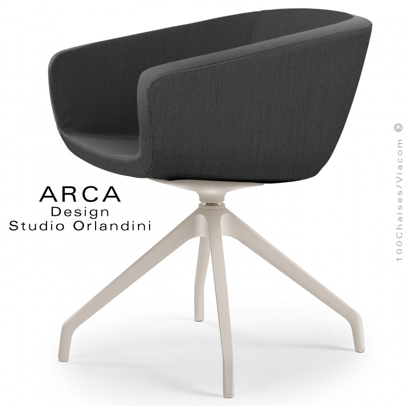 Fauteuil de bureau ARCA Mini, ou domestique, assise pivotante, habillage tissu, piétement plastique noir ou blanc.
