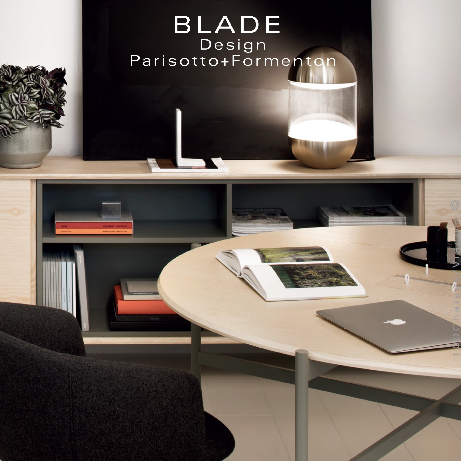 Imaginée par le studio d’architecture italien Parisotto + Formenton, Blade se distingue par son design sculptural, capable d’apporter vie et caractère même aux espaces les plus sobres. Polyvalente et raffinée, cette collection s’intègre aussi naturellement dans une bibliothèque privée, un bureau élégant ou une salle de réunion haut de gamme.