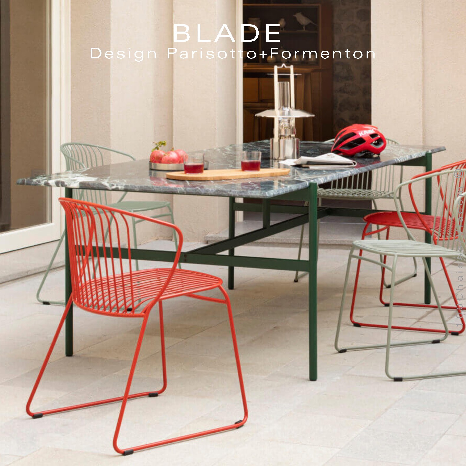 La légèreté visuelle de ses plateaux — disponibles en bois massif ou en verre laqué pour une touche plus contemporaine — s’allie à la finesse métallique de sa structure. Ce jeu subtil de contrastes crée une harmonie parfaite, révélant tout le brillant créatif et l’esprit avant-gardiste de la collection Blade.