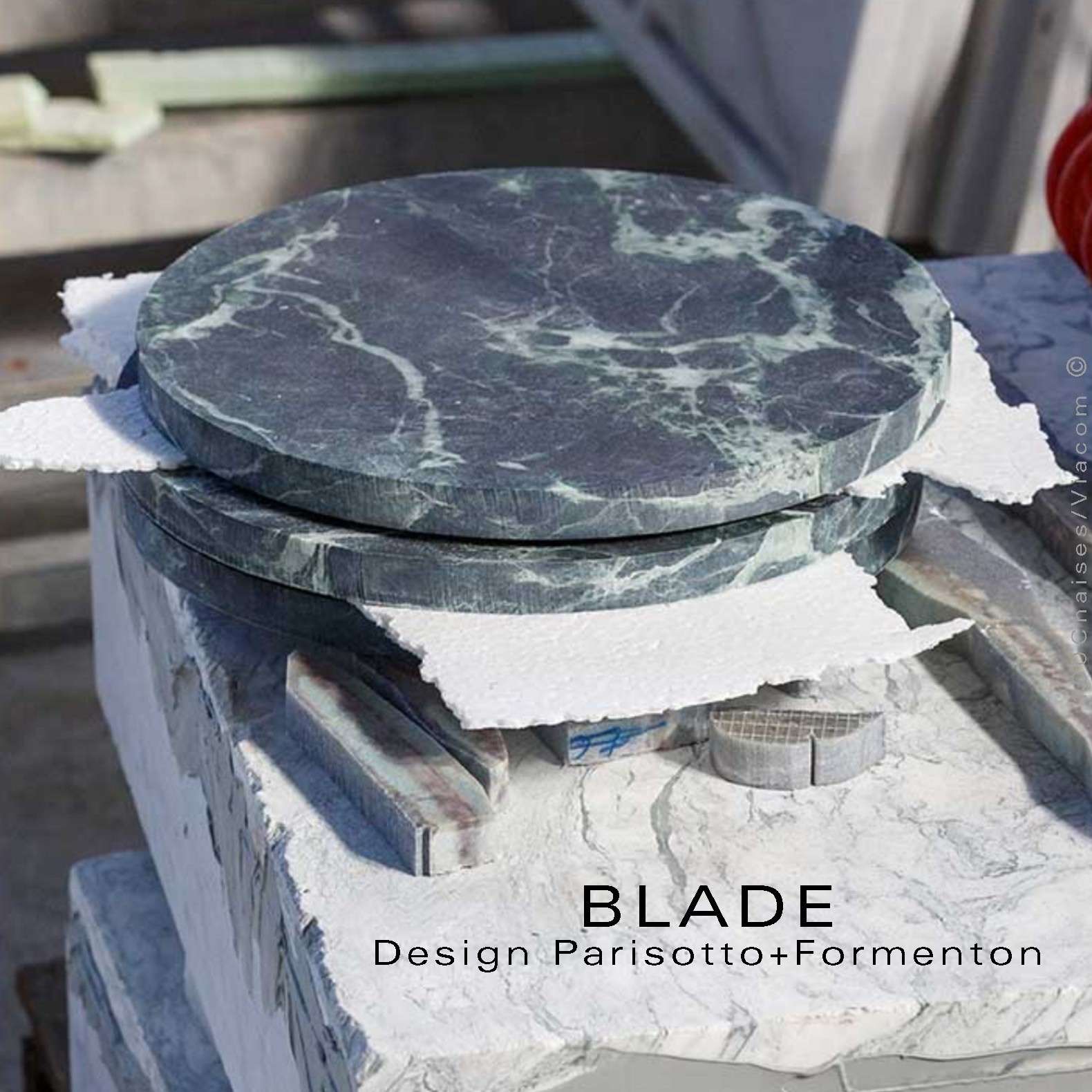 La légèreté visuelle de ses plateaux — disponibles en bois massif ou en verre laqué pour une touche plus contemporaine — s’allie à la finesse métallique de sa structure. Ce jeu subtil de contrastes crée une harmonie parfaite, révélant tout le brillant créatif et l’esprit avant-gardiste de la collection Blade.
