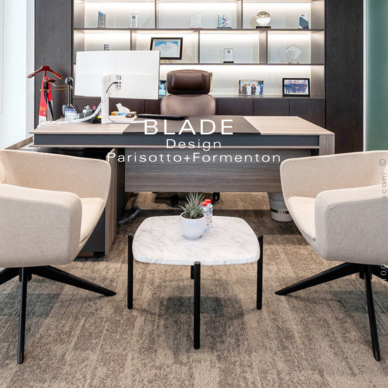 Imaginée par le studio d’architecture italien Parisotto + Formenton, Blade se distingue par son design sculptural, capable d’apporter vie et caractère même aux espaces les plus sobres. Polyvalente et raffinée, cette collection s’intègre aussi naturellement dans une bibliothèque privée, un bureau élégant ou une salle de réunion haut de gamme.
