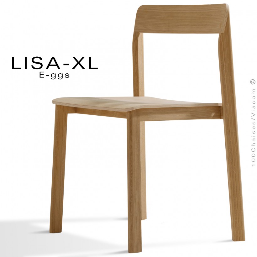 Chaise large bois massif LISA,-XL piétement 4 pieds, empilable, assise et dossier multiplis de bois de Chêne vernis.