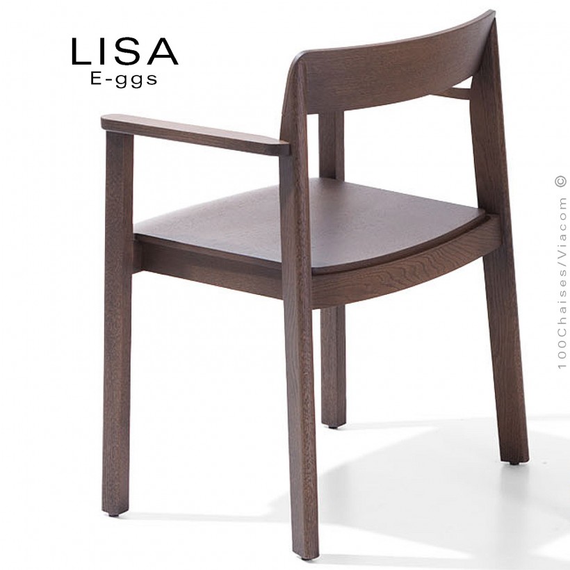 Fauteuil en bois massif de Chêne LISA, piétement 4 pieds, empilable, assise et dossier multiplis de bois de Chêne foncé.