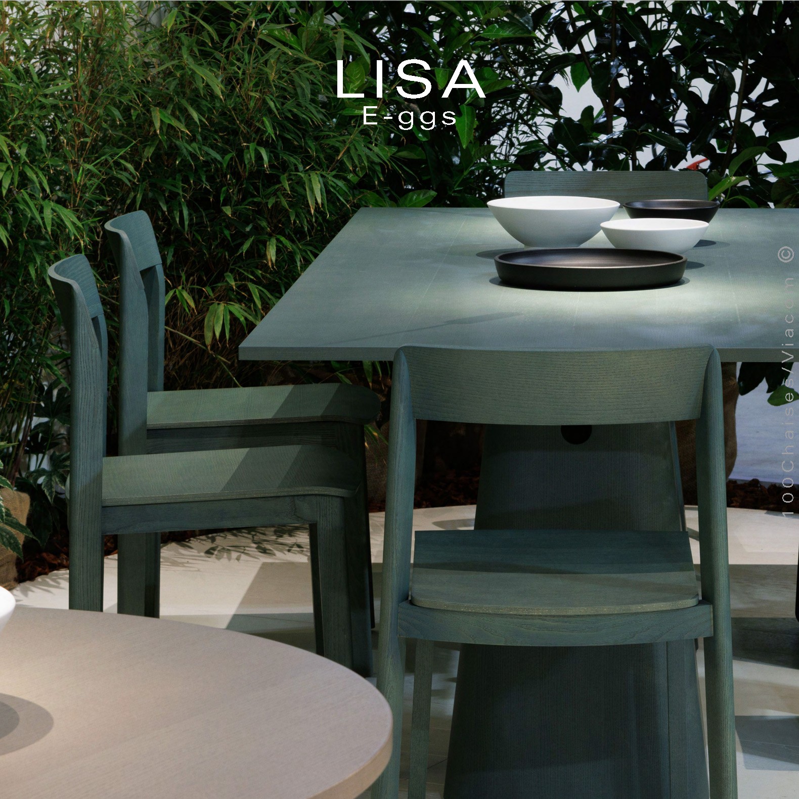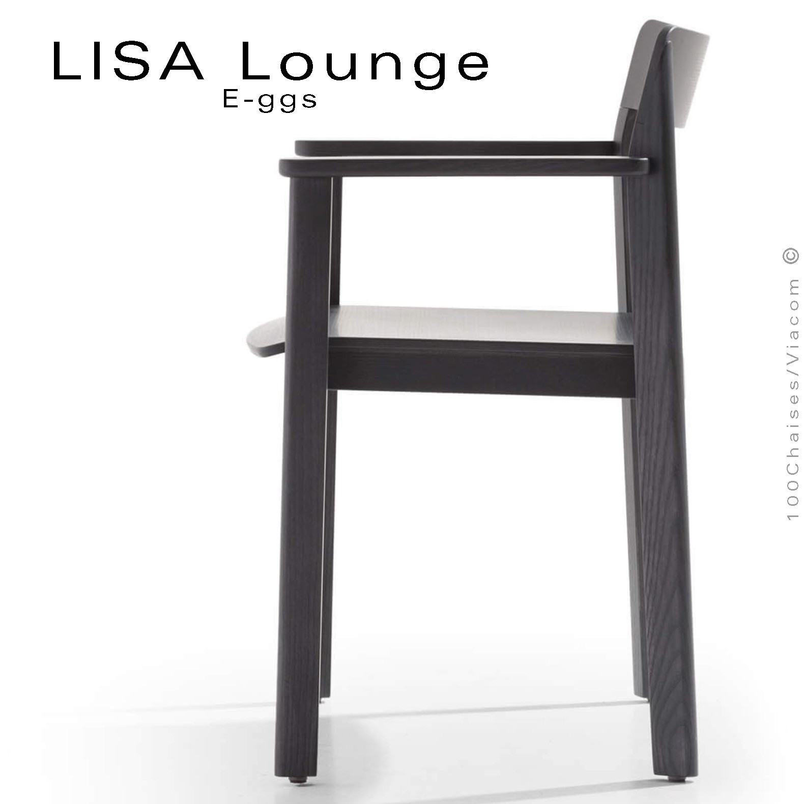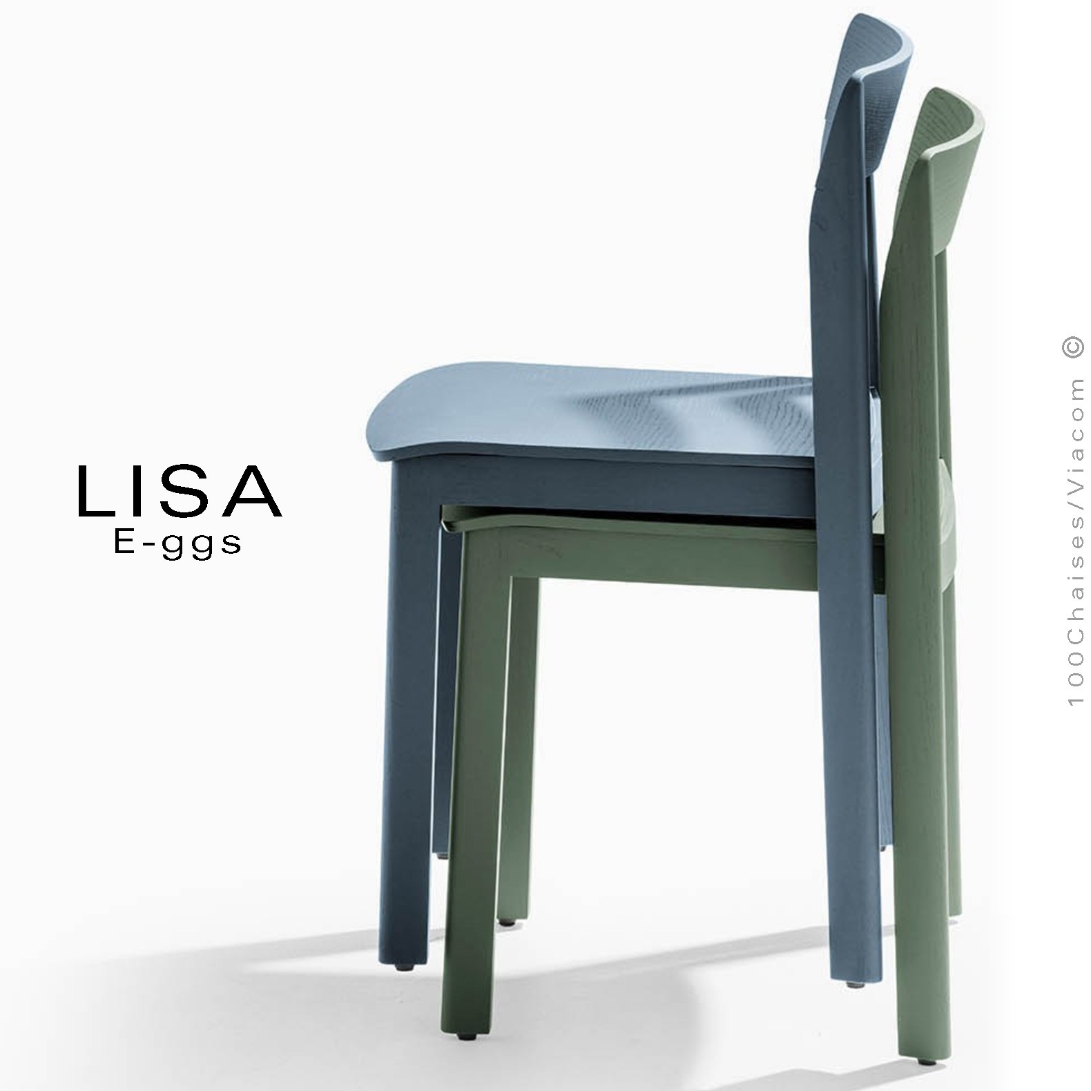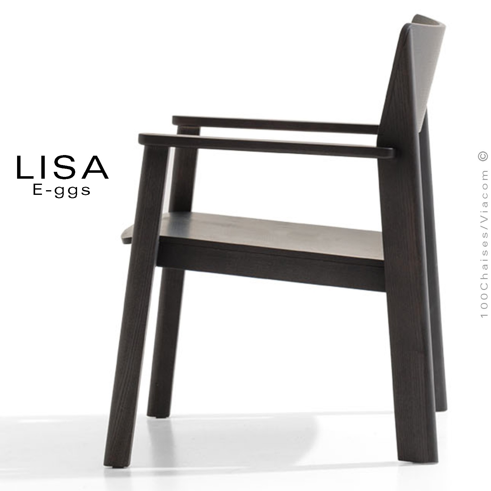 Fauteuil en bois massif design, LISA, structure 4 pieds en bois massif de Frêne ou de Chêne avec tampons plastiques de protection des sols plastiques. Assise et dossier en multiplis de bois de Frêne ou de chêne cintré. Les finitions standard sont le vernis naturel incolore ou noir, mais aussi dans une variété de couleur ou peinture fabricant ou RAL avec une finition brillante qui en font un complément transversal avec une grande flexibilité d'utilisation dans différents contextes. De construction simple et confortable, légère, empilable, compacte parfaite dans un bistrot et élégante dans la maison.