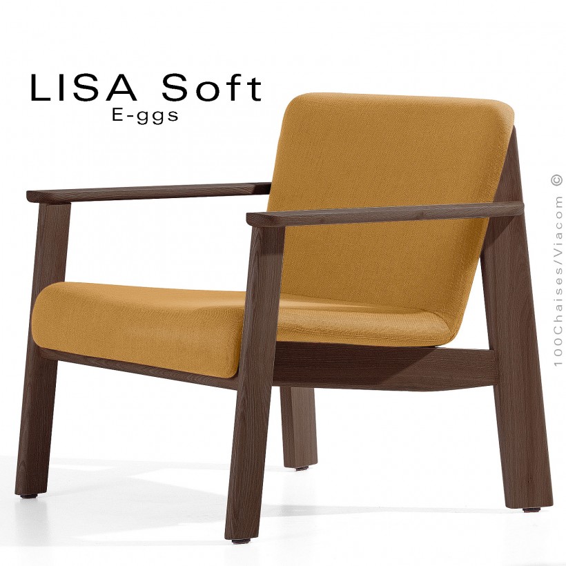 Fauteuil lounge design LISA-SOFT, 4 pieds bois de Frêne, Chêne ou Noyer, assise habillage tissu, avec coussin, pour intérieur .