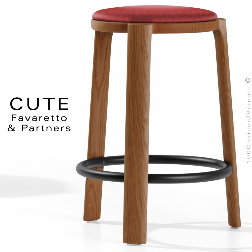 Tabouret de cuisine design CUTE, structure Frêne, Chêne, Noyer massif vernis, assise garnie, habillage tissu pour intérieur.