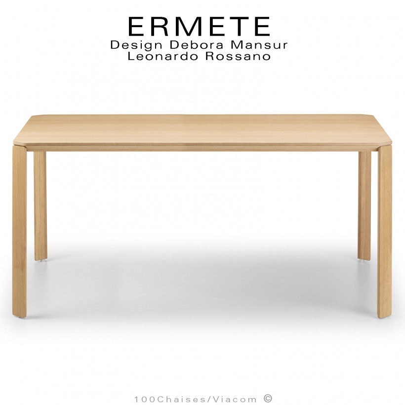 Grande table repas ou bureau rectangulaire ERMETE, pieds bois massif Chêne vernis, plateau placage Chêne vernis.